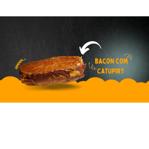 Pão, salsicha ou linguiça, Bacon, Catupiry, ketchup, mostarda, maionese, tomate, cebola, milho, ervilha e batata palha