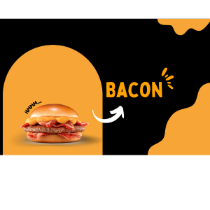Pão, 1 hambúrguer 56g, bacon, 1 queijo cheddar, tomate, picles, molho especial.