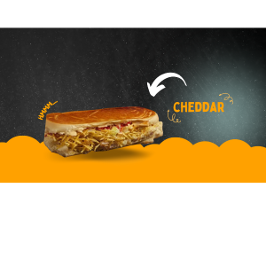 Pão, 2 hambúrgueres, 2 queijos cheddar, aplicação de cheddar, tomate, picles e molho especial.