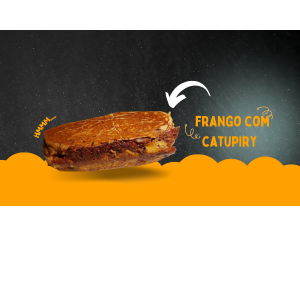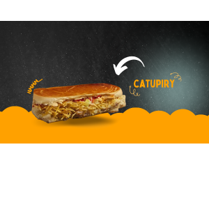Pão, carne de picanha de 120g, queijo, presunto, cheddar, catupiry, bacon, frango, ketchup, mostarda, maionese, tomate, cebola, milho, ervilha, picles e batata palha.